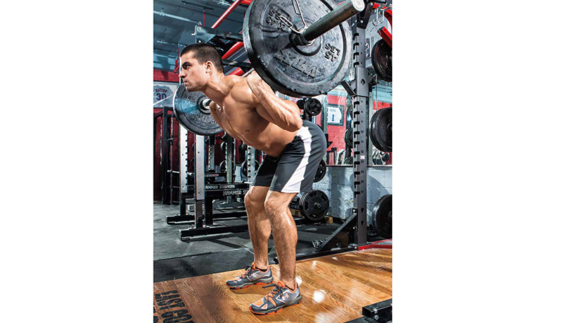 *Поставьте штангу на блоки высотой 10 см или на страхующие упоры силовой рамы на уровне, достигающем примерно середины голеней.