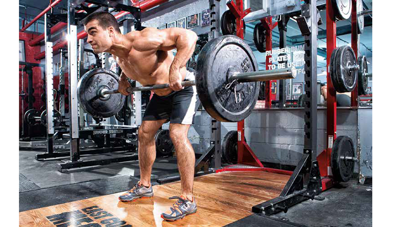 *Выполняйте обычную становую тягу, стоя на 20-кг блине для штанги.