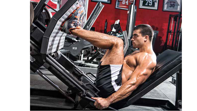 Упритесь ступнями в верхнюю часть платформы и дайте ей опуститься до тех пор, пока ноги не окажутся согнутыми в коленях под углом 90 градусов.